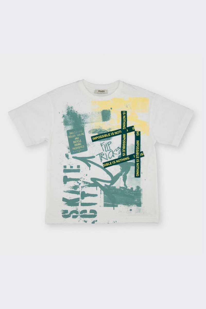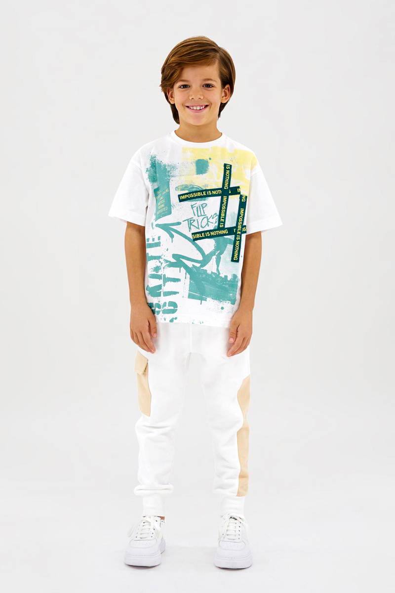 تی شرت آستین کوتاه پسرانه سفید طرح دار – کالکشن 2025